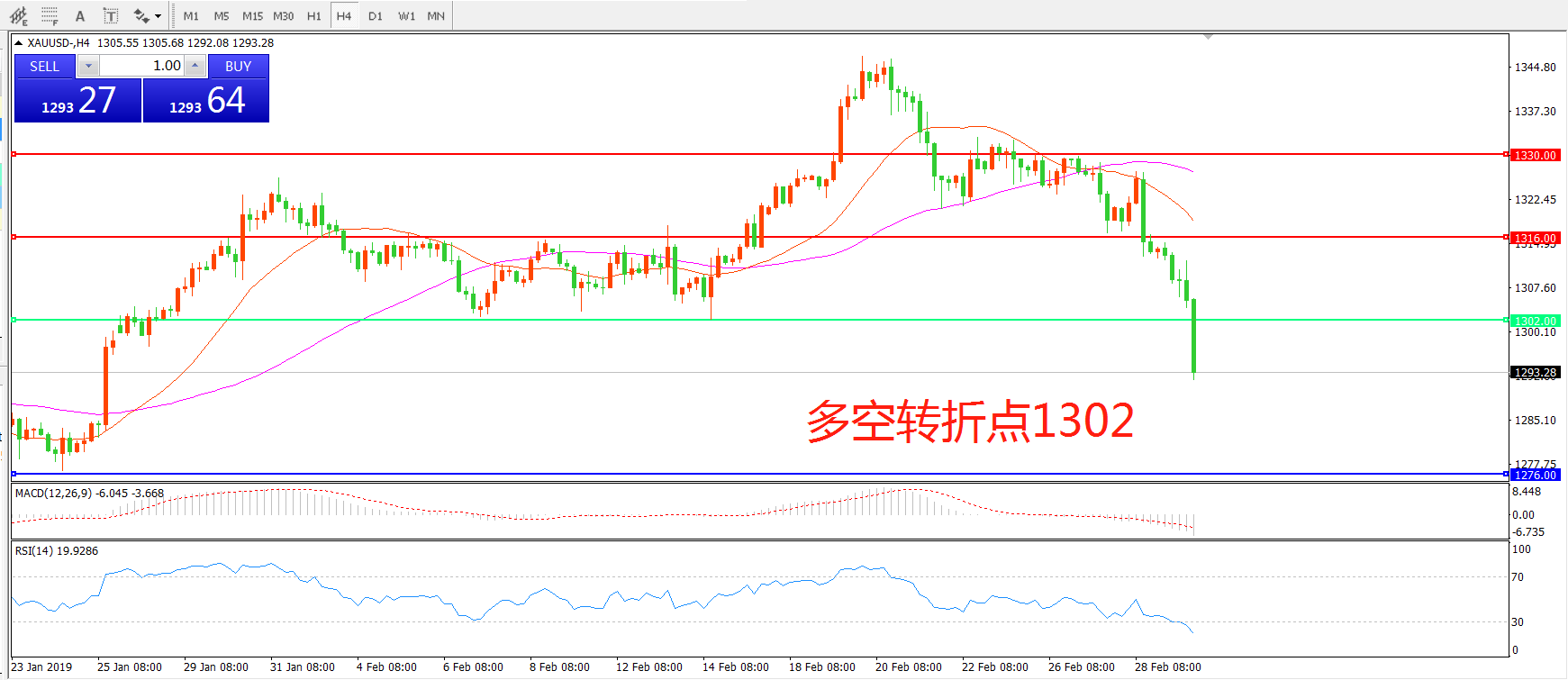 多空转折点:1302.00