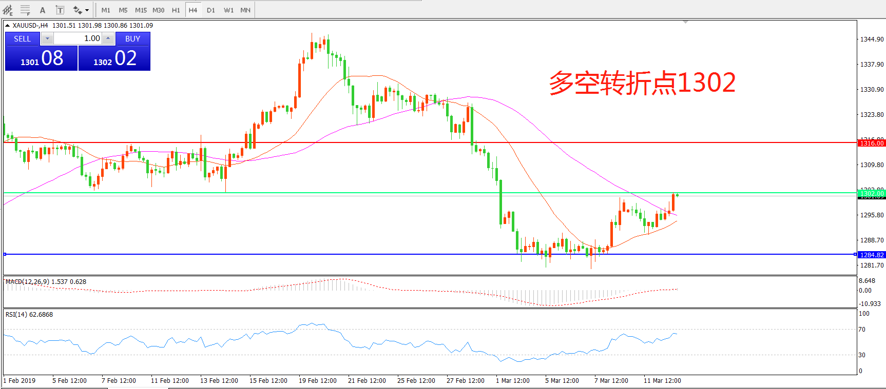多空转折点:1302.00