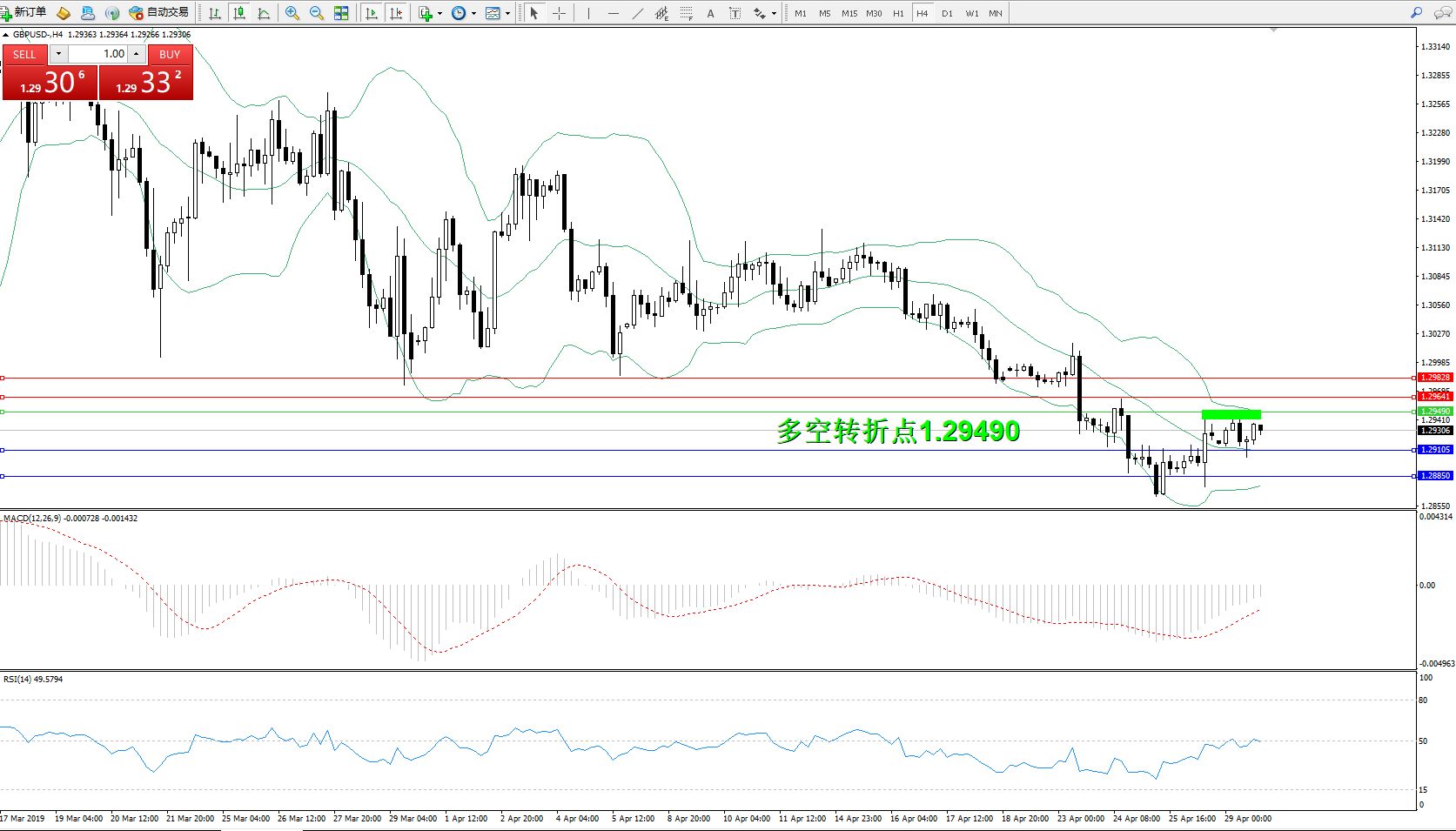 交易策略:1.29490下方看跌,目标1.291051.28850