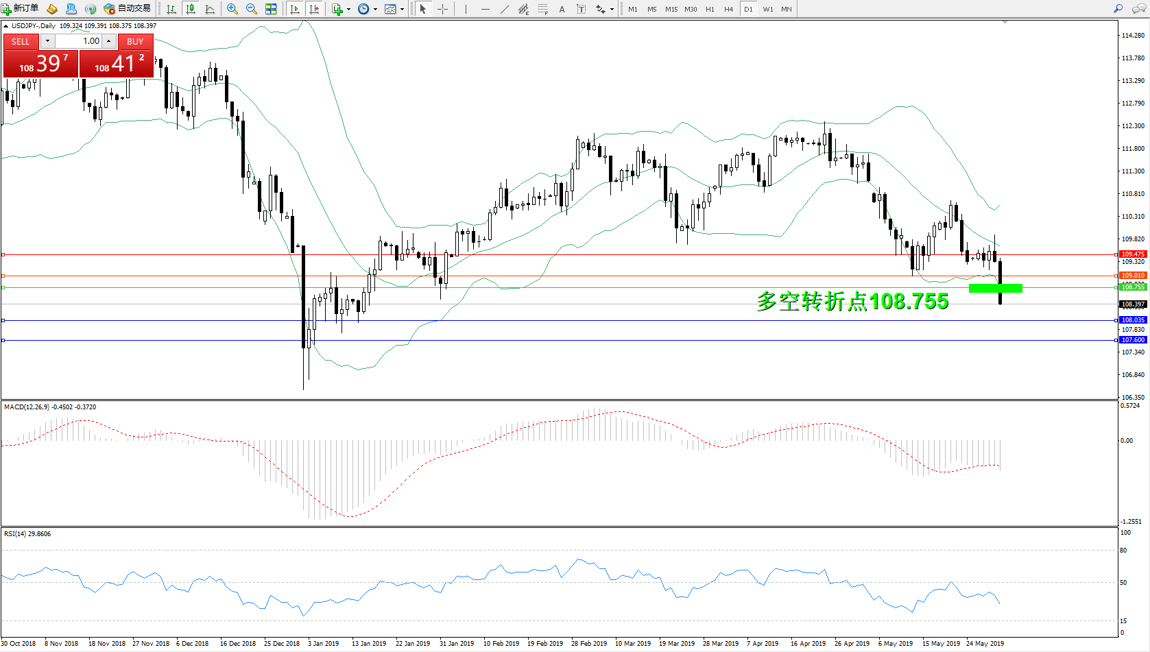 投资者纷纷涌向避险资产日元,令日元兑美元录得四个月来最佳单日表现,此前美国总统特朗普威胁要对墨西哥输美商品征收关税,引发金融市场动荡和对经济衰退的担忧。在全球贸易冲突期间,几种货币被视为避险货币,但日元一直是今年以来最坚挺的货币之一,周五投资者似乎选择日元。美元兑日元跌1.11%,报108.41。日元兑欧元上涨0.75%。5月,日元兑美元势将上涨2.72%,当前局势背景下,日本投资者可能会将资金配置从美欧资产撤离,迁移回本国市场,这会令市场对日元的需求进一步上升。如果此后美联储派迫于贸易问题的压力而重新释放出偏向鸽派的政策预期,那么美元的承压下行就会对美元兑日元的续跌进一步推波助澜。