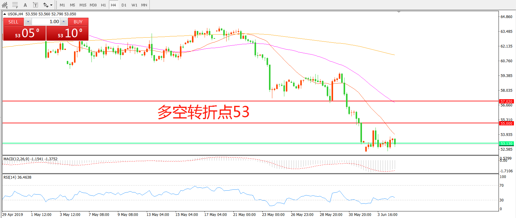 多空转折点:53.00
