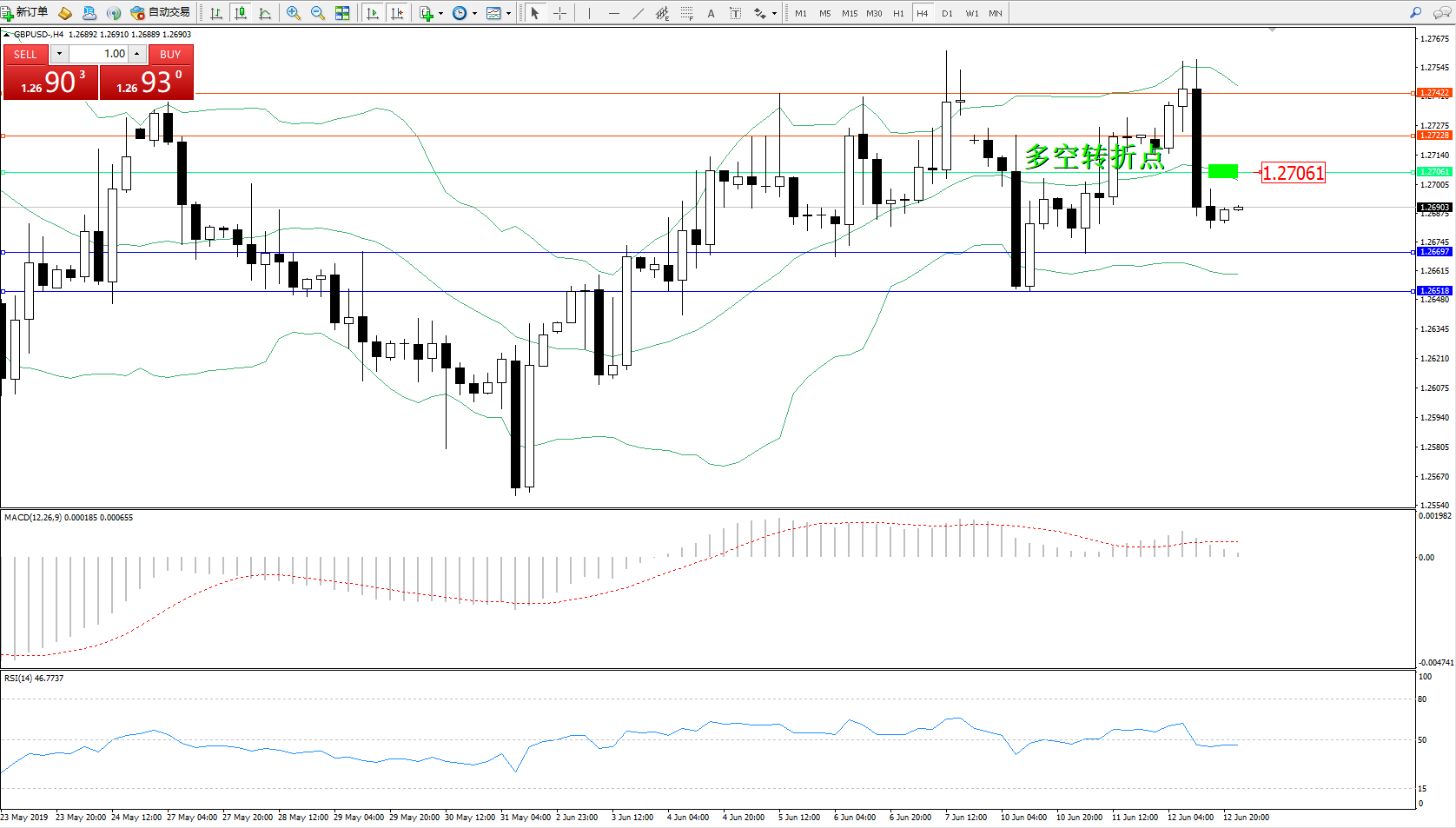 交易策略:1.27061下方看跌,目标1.266971.26518