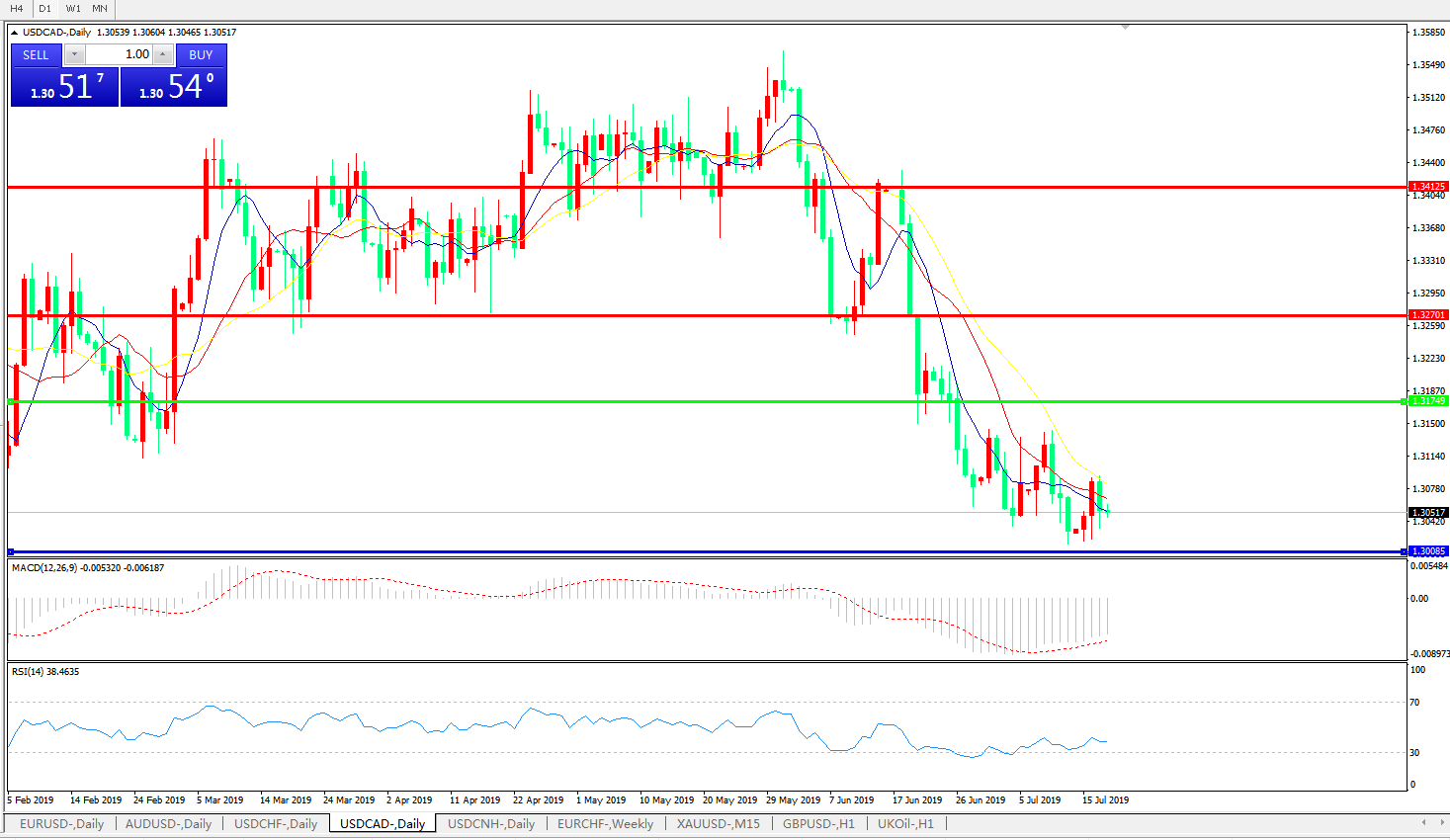 美元兑加元USDCAD    日线图:
