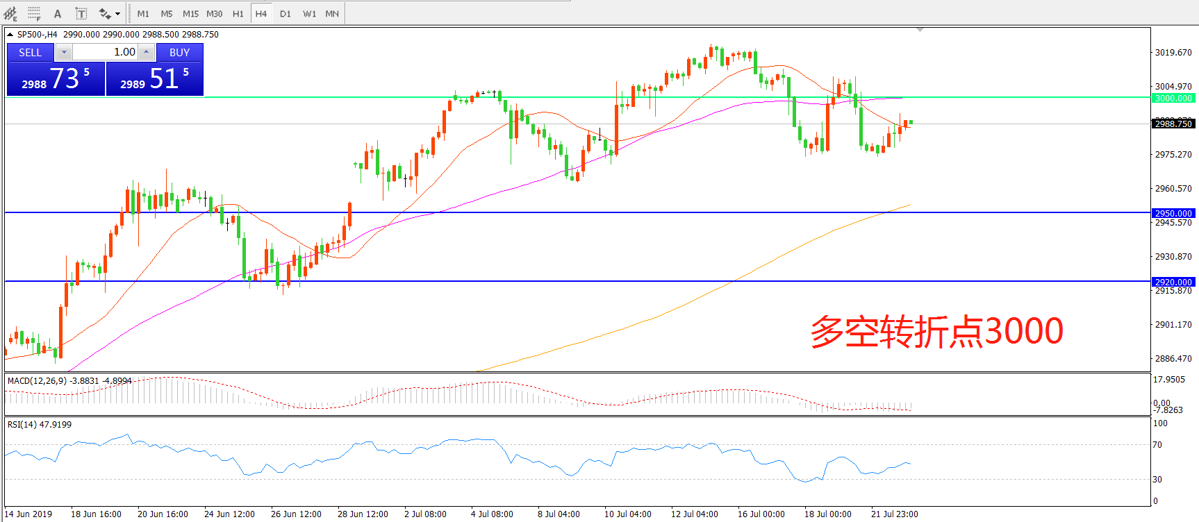 交易策略:在3000.00之下看跌,目标2950.00 2920.00