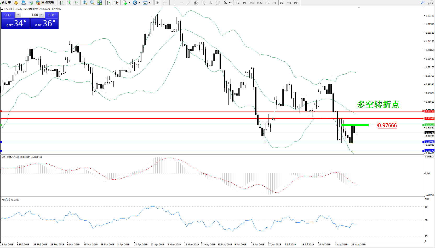 交易策略:0.97666下方看跌,目标0.969480.96573