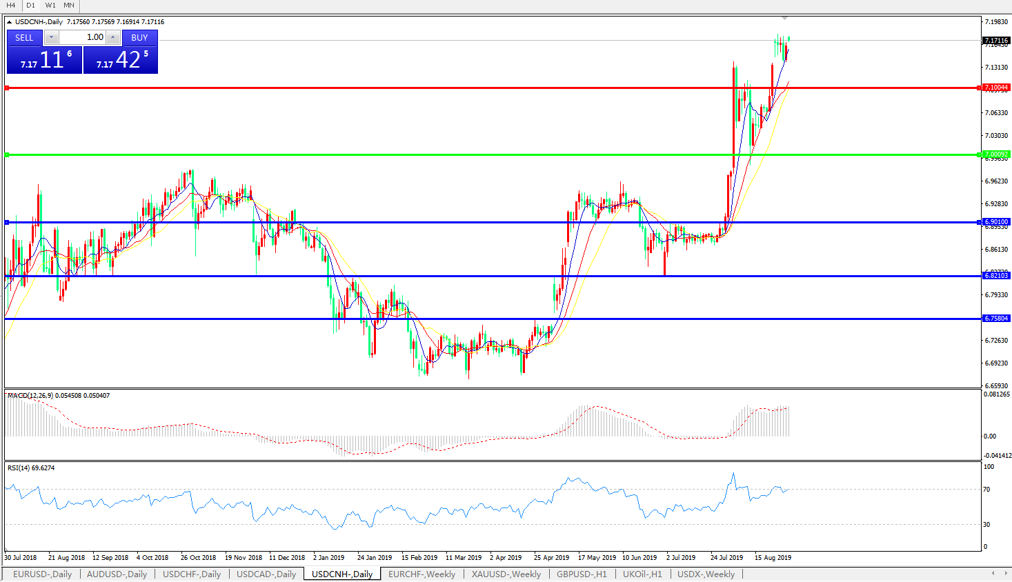 交易策略: 在7.0000之上,看涨,目标价位为7.1000,然后为7.2000。
