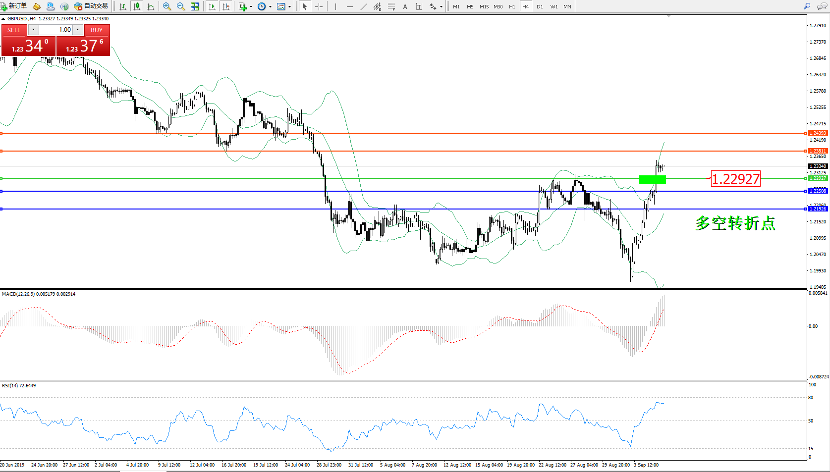 交易策略:1.22927上方看涨,目标1.238111.24393