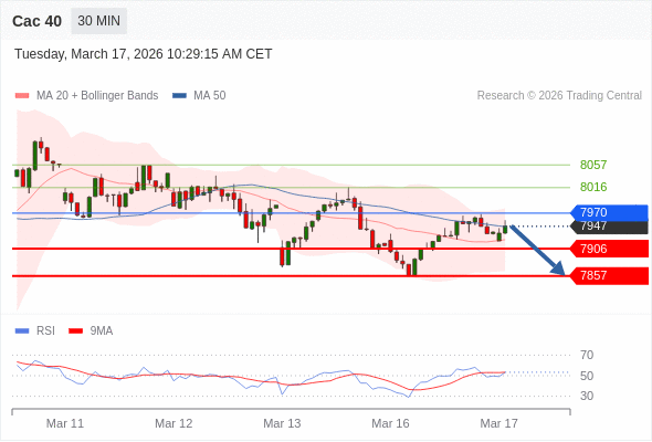 Cac 40 当日内: 没有明显变化趋势。