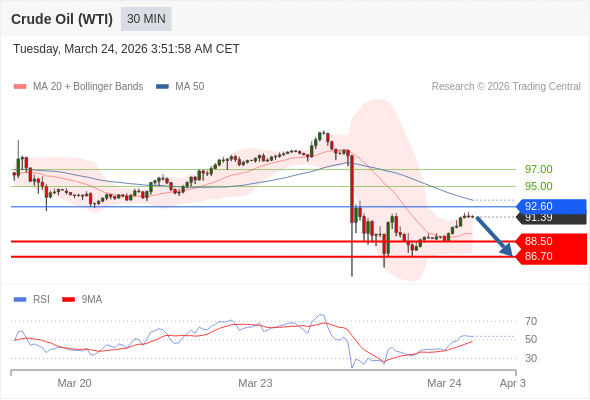 交易策略: 在 92.60 之下,看跌,目标价位为 88.50 ,然后为 86.70 。