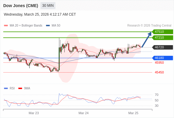 在 46180 之上,看涨,目标价位为 47210 ,然后为 47510 。