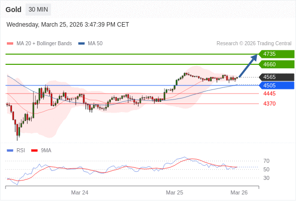 在 4505 之上,看涨,目标价位为 4660 ,然后为 4735 。