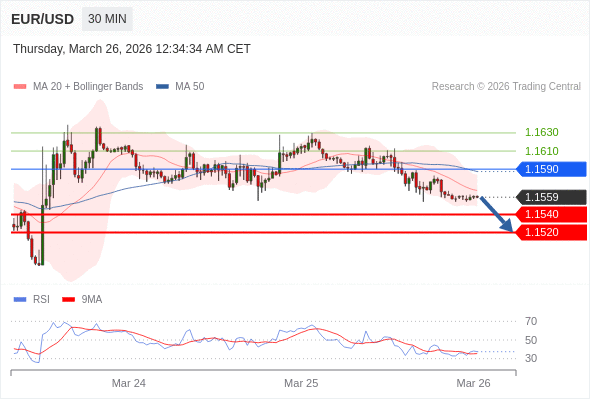 在 1.1590 之下,看跌,目标价位为 1.1540 ,然后为 1.1520 。