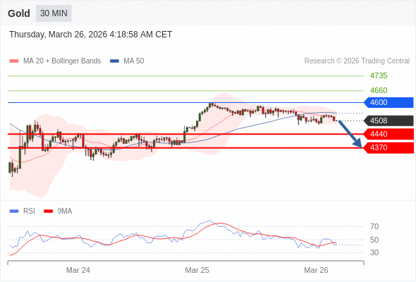 在 4600 之下,看跌,目标价位为 4400 ,然后为 4370 。
