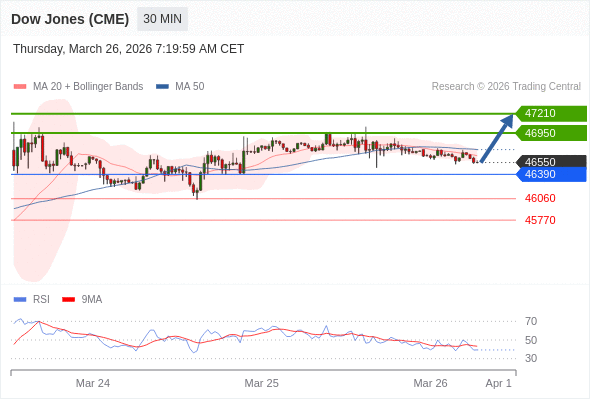 在 46390 之上,看涨,目标价位为 46950 ,然后为 47210 。