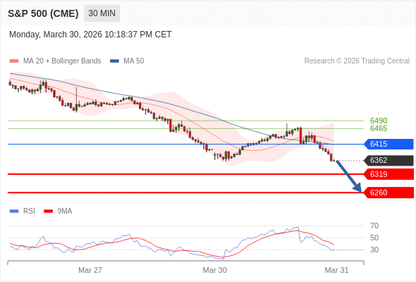 在 6415 之下,看跌,目标价位为 6319 ,然后为 6260 。
