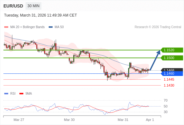 在 1.1460 之上,看涨,目标价位为 1.1500 ,然后为 1.1520 。