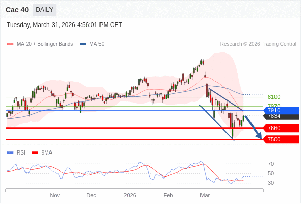 在 7910 之下,看跌,目标价位为 7660 ,然后为 7500 。