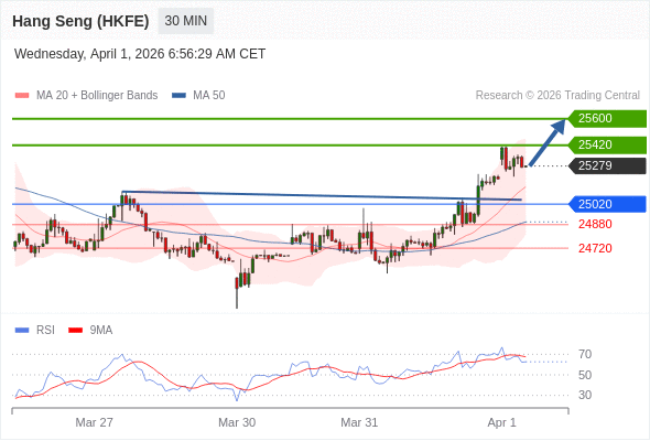 在 25020 之上,看涨,目标价位为 25420 ,然后为 25600 。