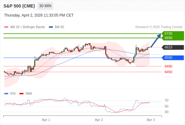 在 6550 之上,看涨,目标价位为 6690 ,然后为 6720 。
