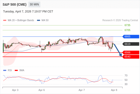 在 6665 之下,看跌,目标价位为 6566 ,然后为 6540 。