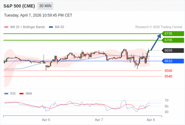 在 6610 之上,看涨,目标价位为 6705 ,然后为 6735 。