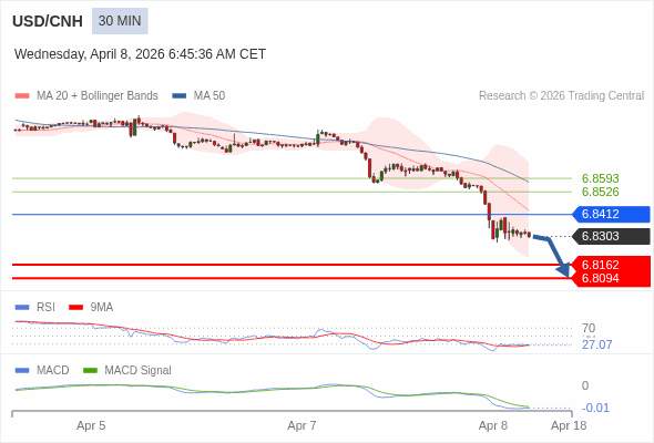 交易策略: 看跌,在 6.8412 之下。
