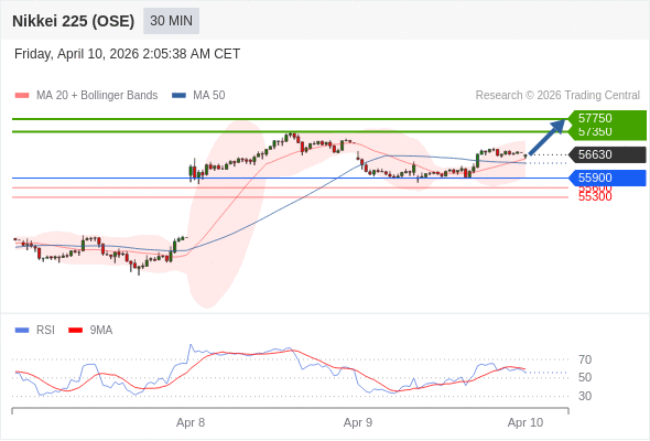 在 55900 之上,看涨,目标价位为 57350 ,然后为 57750 。