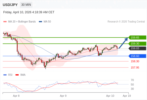 在 158.60 之上,看涨,目标价位为 159.30 ,然后为 159.65 。