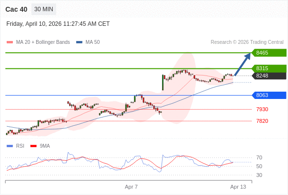 Cac 40 当日内: 谨慎操作。
