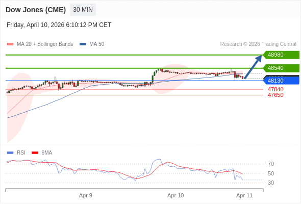 在 48130 之上,看涨,目标价位为 48540 ,然后为 48980 。