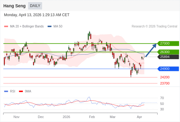 恒生指数 短线: 目标为26300。
