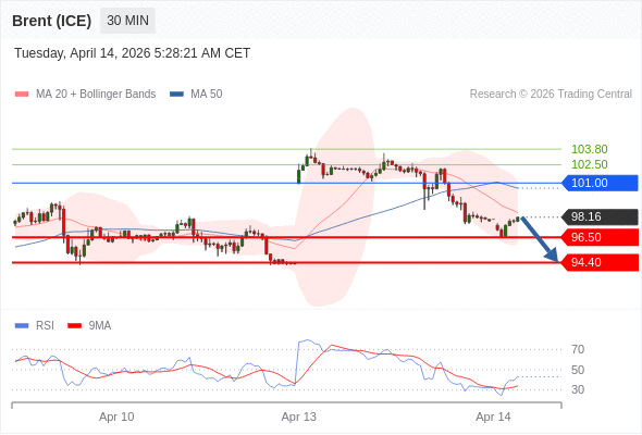 交易策略: 在 101.00 之下,看跌,目标价位为 96.50 ,然后为 94.40 。