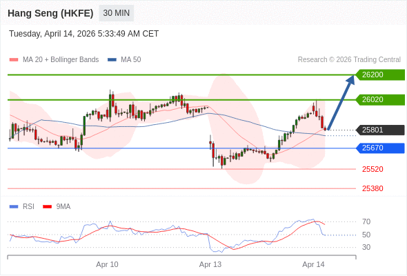 在 25670 之上,看涨,目标价位为 26020 ,然后为 26200 。