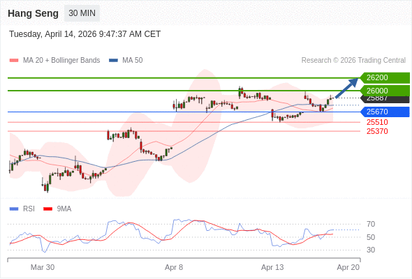 在 25670 之上,看涨,目标价位为 26000 ,然后为 26200 。