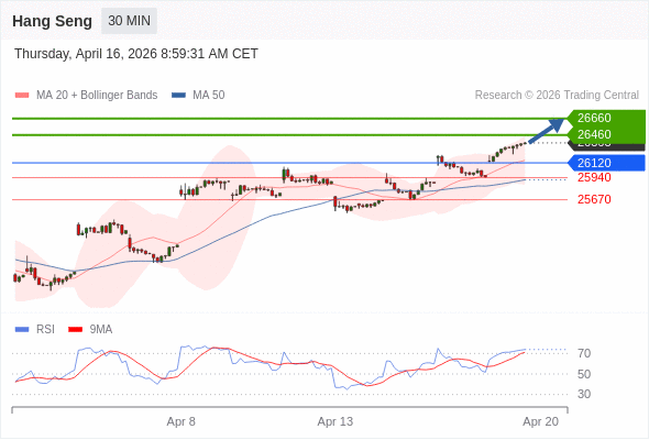 在 26120 之上,看涨,目标价位为 26460 ,然后为 26660 。