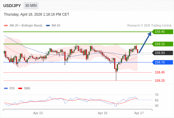 在 158.70 之上,看涨,目标价位为 159.15 ,然后为 159.45 。