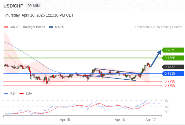 在 0.7815 之上,看涨,目标价位为 0.7855 ,然后为 0.7875 。