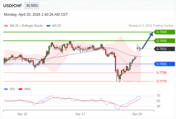 在 0.7805 之上,看涨,目标价位为 0.7845 ,然后为 0.7860 。