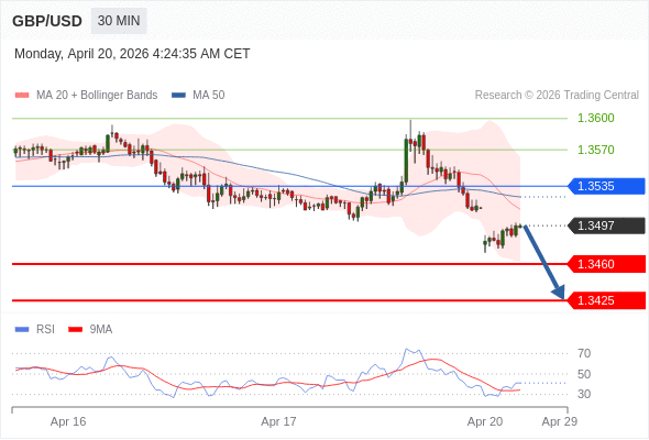 在 1.3535 之下,看跌,目标价位为 1.3460 ,然后为 1.3425 。