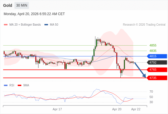 在 4815 之下,看跌,目标价位为 4765 ,然后为 4735 。