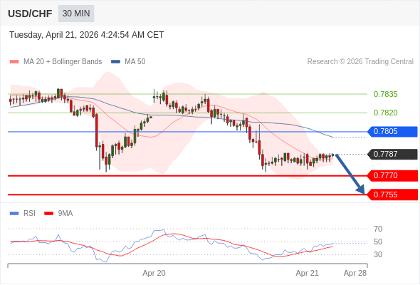 在 0.7805 之下,看跌,目标价位为 0.7770 ,然后为 0.7755 。