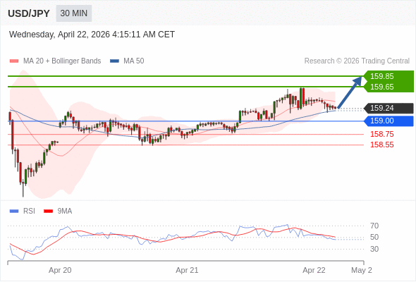 在 159.00 之上,看涨,目标价位为 159.65 ,然后为 159.85 。