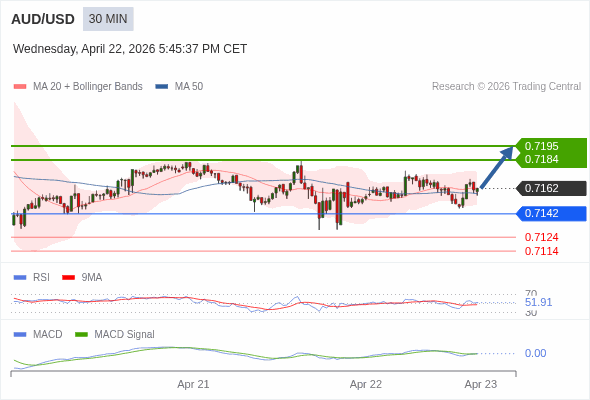 替代方案: 在0.7142以下,期待0.7124和0.7114。