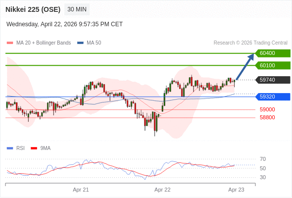 在 59320 之上,看涨,目标价位为 60100 ,然后为 60400 。