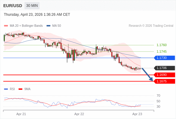 在 1.1730 之下,看跌,目标价位为 1.1690 ,然后为 1.1675 。