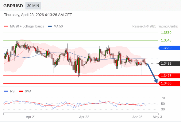 在 1.3530 之下,看跌,目标价位为 1.3475 ,然后为 1.3460 。