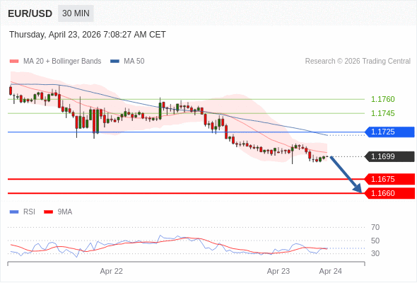 交易策略: 在 1.1725 之下,看跌,目标价位为 1.1675 ,然后为 1.1660 。
