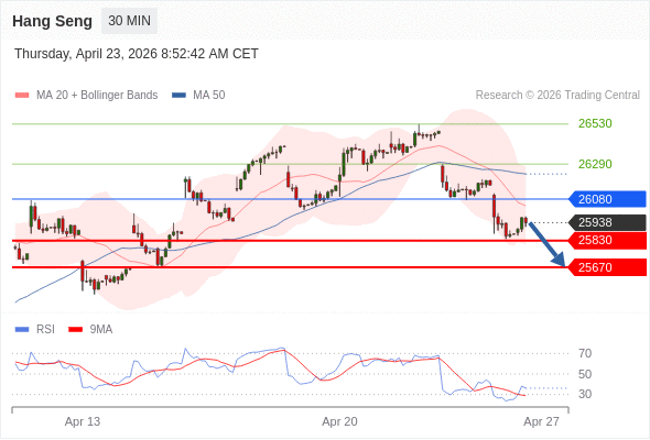恒生指数 当日内: 短期关键阻力位在26080。