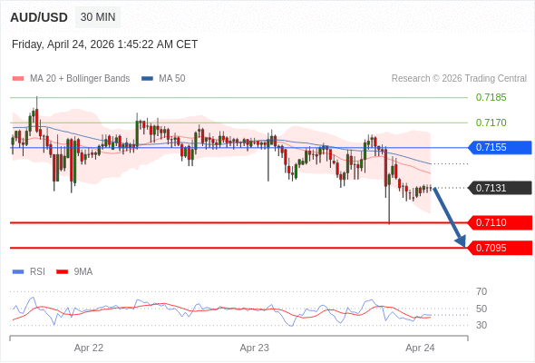 在 0.7155 之下,看跌,目标价位为 0.7110 ,然后为 0.7095 。