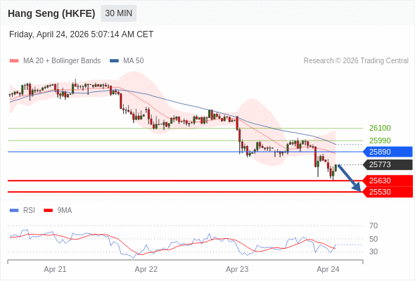 香港恒生指数期货 当日内: 短期关键阻力位在25890。
